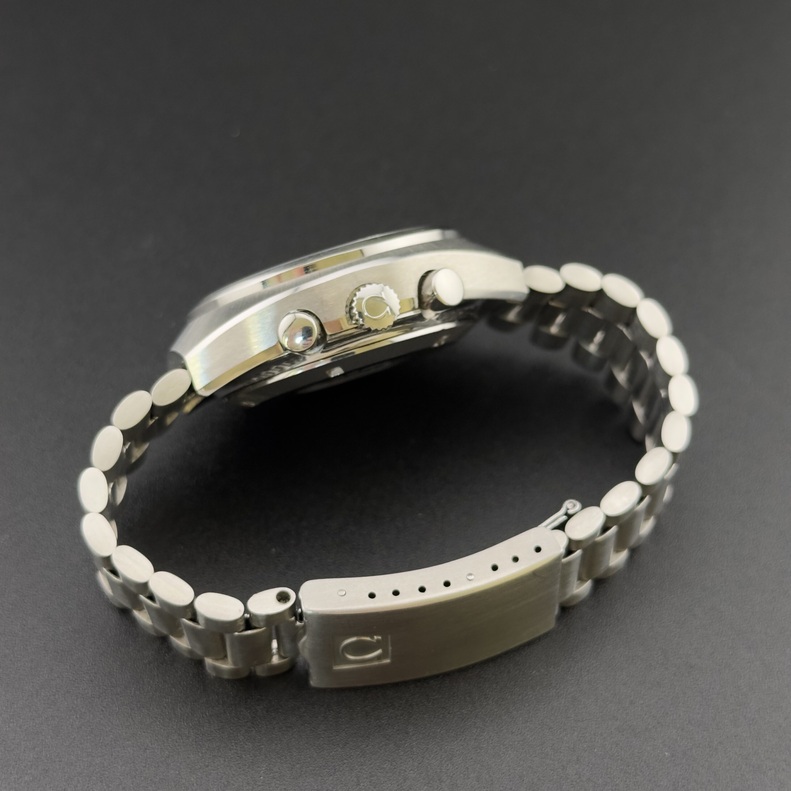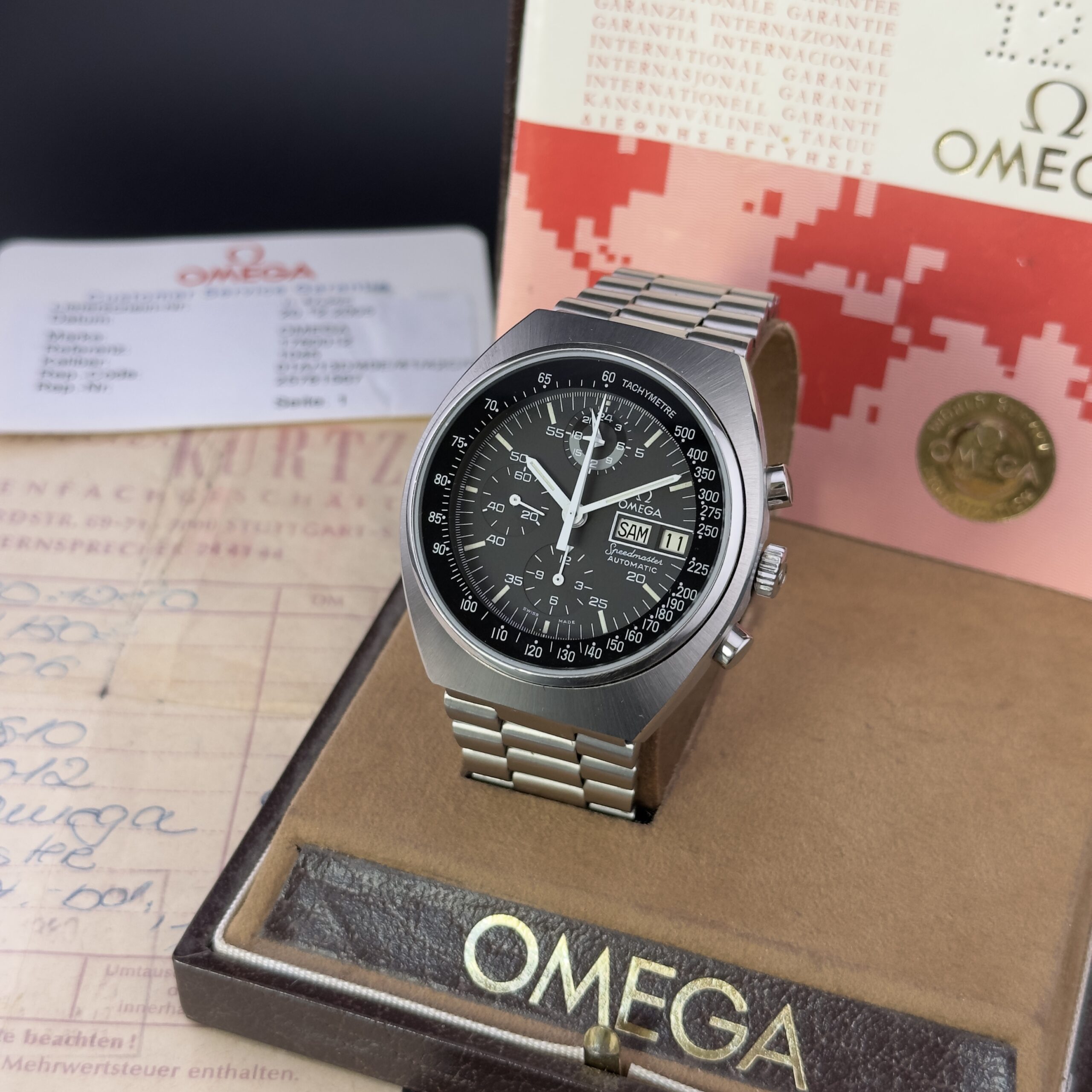 Orologio in condizioni eccellenti corredato di scatola, garanzia originale (venduto nel 1980 in Germania), ricevuta d’acquisto dell’epoca e card Omega service del 2005.